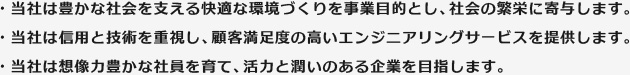 | 人と技術で総合力を結集して顧客のニーズに応え、社会的責任を果たす。 |